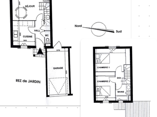 Cette maison se compose d'un rez de jardin comprenant : une entrée, un salon avec rangements ouvrant sur le jardin , une grande cuisine ouverte, WC.