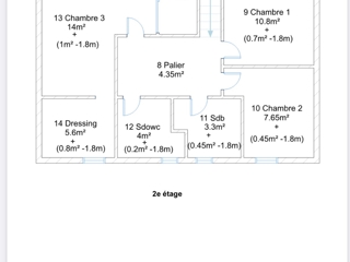 Au deuxieme étage, l’espace nuit comprend trois belles chambres lumineuses, dont une suite parentale avec salle d’eau privative et dressing. Une seconde salle d’eau avec WC complète cet espace, offrant tout le confort nécessaire à une vie de famille.