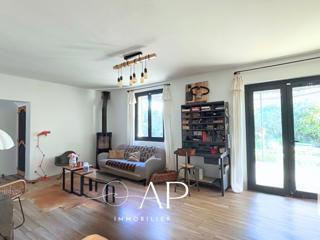 une entrée élégante, un cellier, un double salon séjour avec poêle à bois, une spacieuse cuisine,