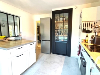 - Une cuisine moderne équipée, séparée du salon par une verrière