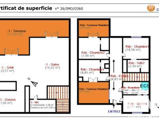 Au Rez de jardin : un séjour avec une cuisine ouverte et équipée, un wc indépendant, une terrasse couverte et un jardin. Chauffage individuel électrique. DPE en C car maison récente et bien isolée.