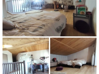 - En R+3: une chambre de 35m2 mansardée et aménagée en open-space (avec bureau), avec sa salle d'eau (douche et wc) et sa penderie.