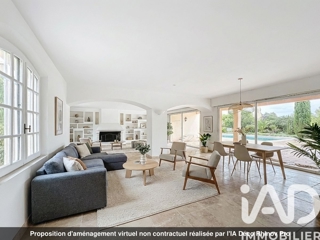 iad France - Laurent Ferriere vous propose: Dans un domaine privé, sécurisé et très recherché de Sainte-Maxime, au calme absolu et à seulement 1 km des plages et 2 km du centre-ville, découvrez cette maison de caractère d’environ 400 m² implantée sur un terrain paysager de plus de 3000 m² avec piscine.