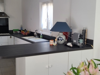 La pièce de vie de 45 m², spacieuse et baignée de lumière, accueille une cuisine aménagée et équipée, ouverte sur un séjour convivial, idéal pour recevoir.