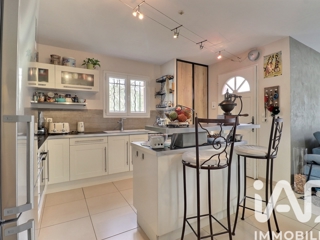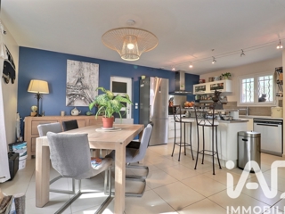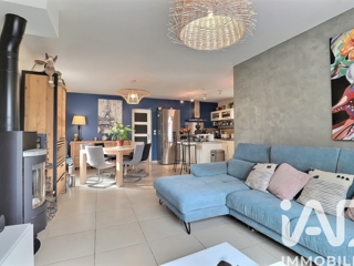Elle se compose d'une entrée, d'une grande pièce de vie LUMINEUSE, avec un charmant poêle à bois, d'une grande baie vitrée avec un accès direct sur la terrasse en prolongement, la cuisine de type us, équipée & aménagée, ouverte sur la salle à manger.