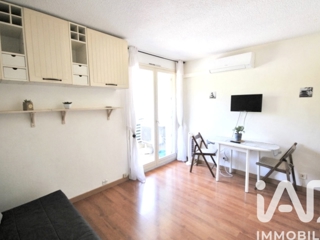 L'appartement se compose d'une pièce principale lumineuse avec climatisation, offrant un espace de vie modulable, d'une salle d'eau avec wc et d'une terrasse exposée à l'est, idéale pour profiter du soleil et des douces soirées méditerranéennes.